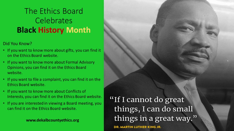 The DeKalb Ethics Board was established in its current form following the passage of HR 1243 in June of 2020. In 2015 with the passage of HR 597, the first Ethics Office was established and a full-time Ethics Officer was hired. By law, the Ethics Board is completely independent of the DeKalb CEO, Commissioners and any officers or employees of DeKalb County government.